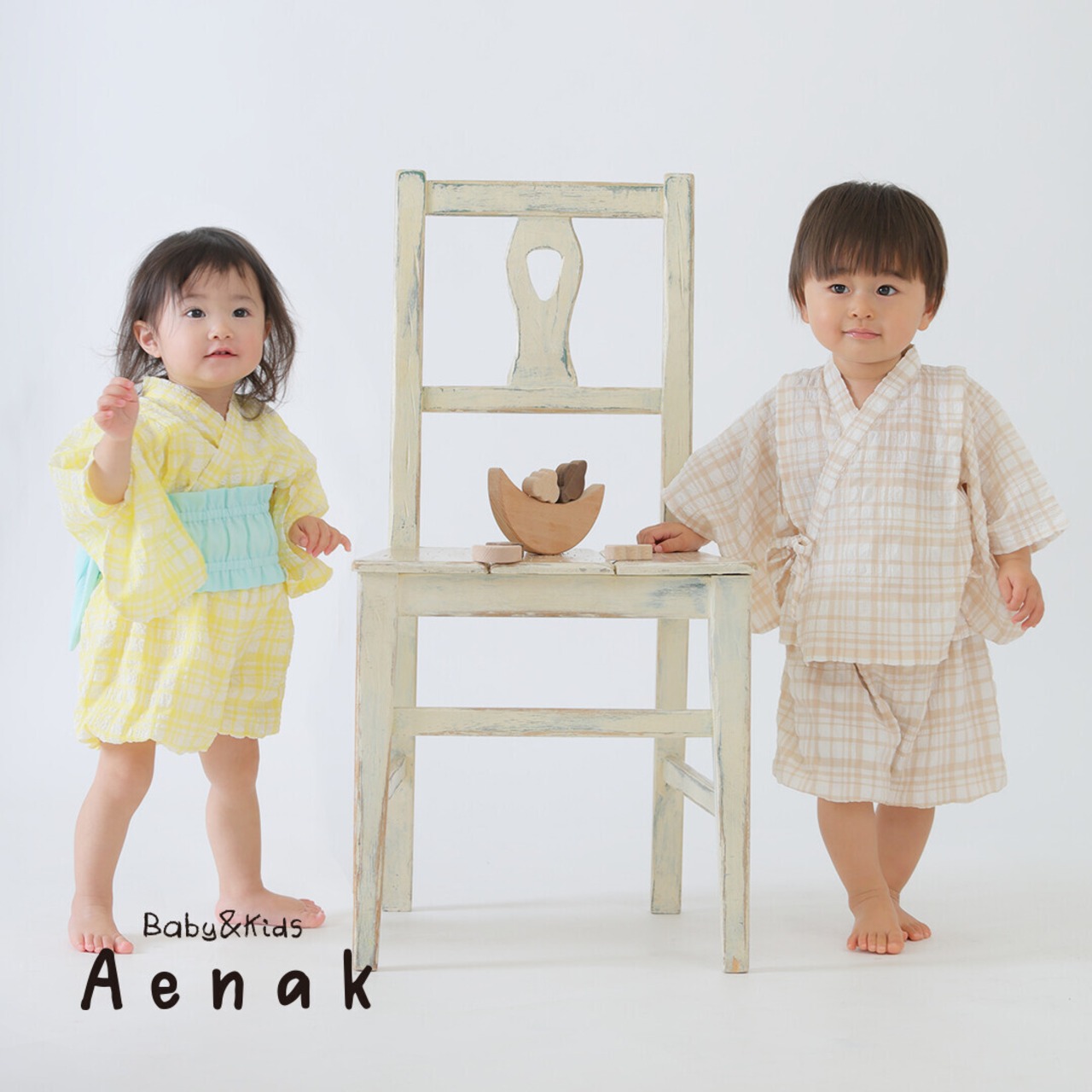 浴衣風甚平+帯の2点セットで簡単に着られる♪