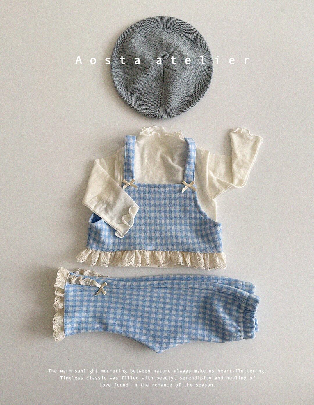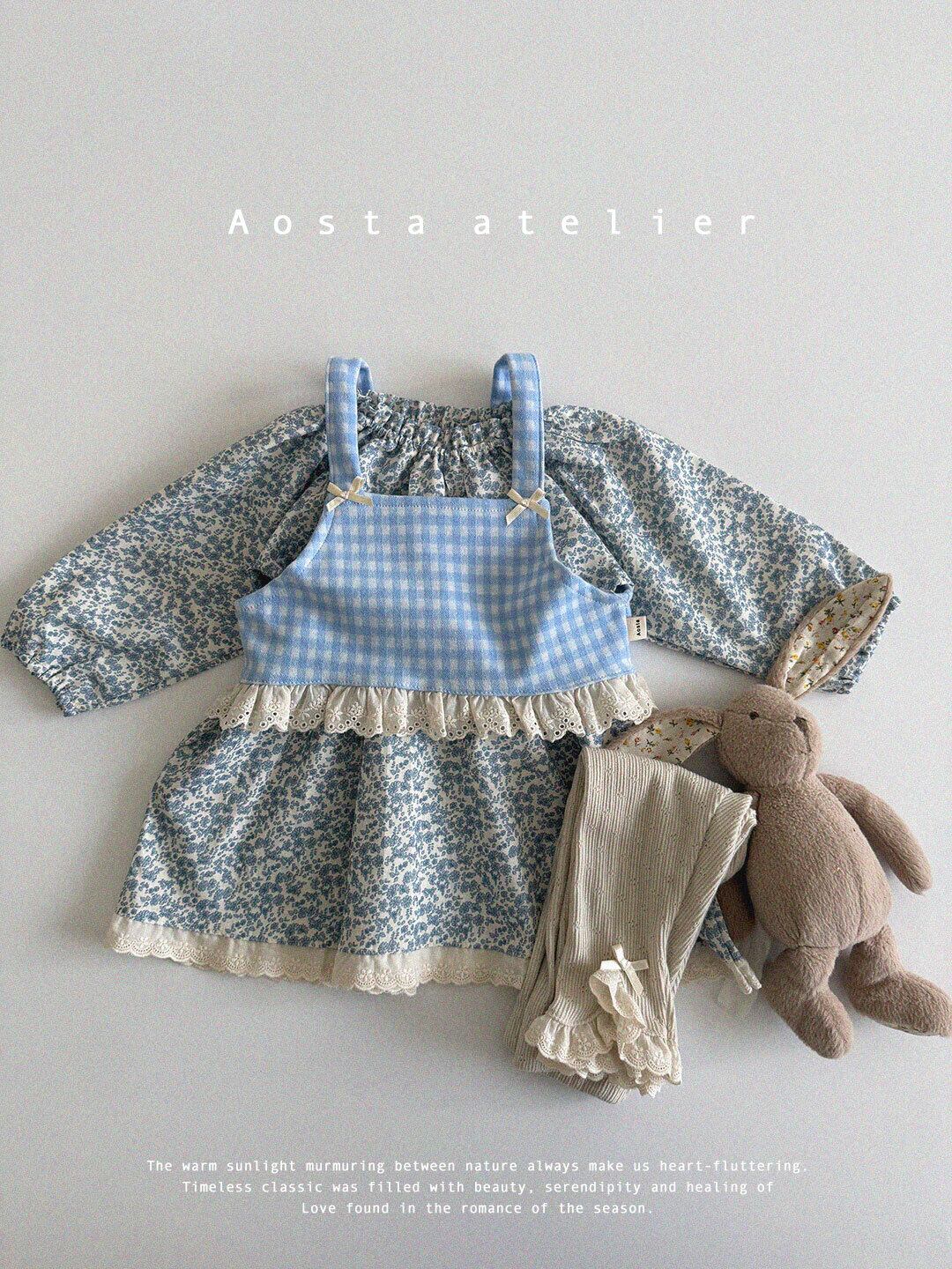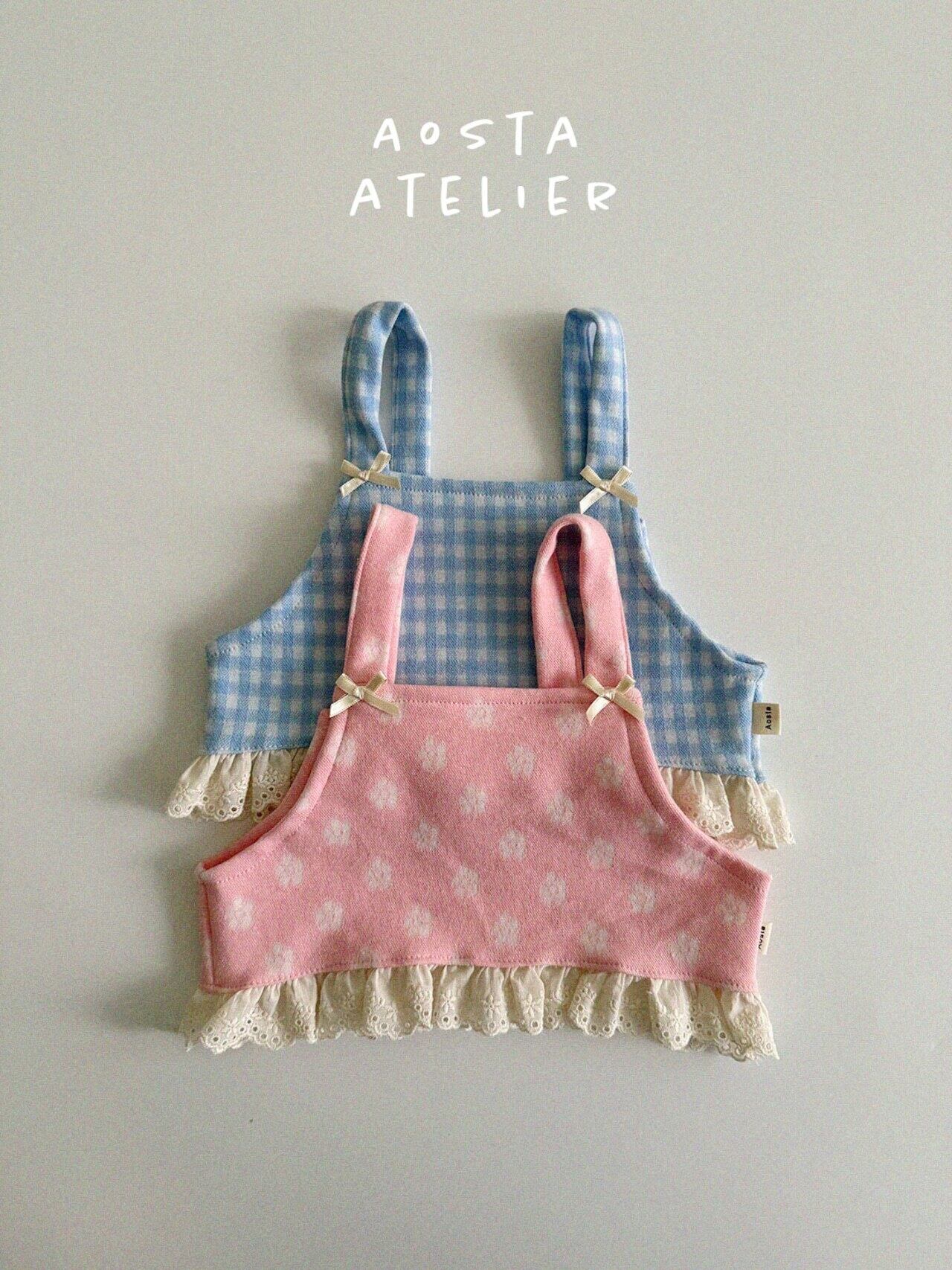 ブルーギンガムチェック柄のビスチェ。